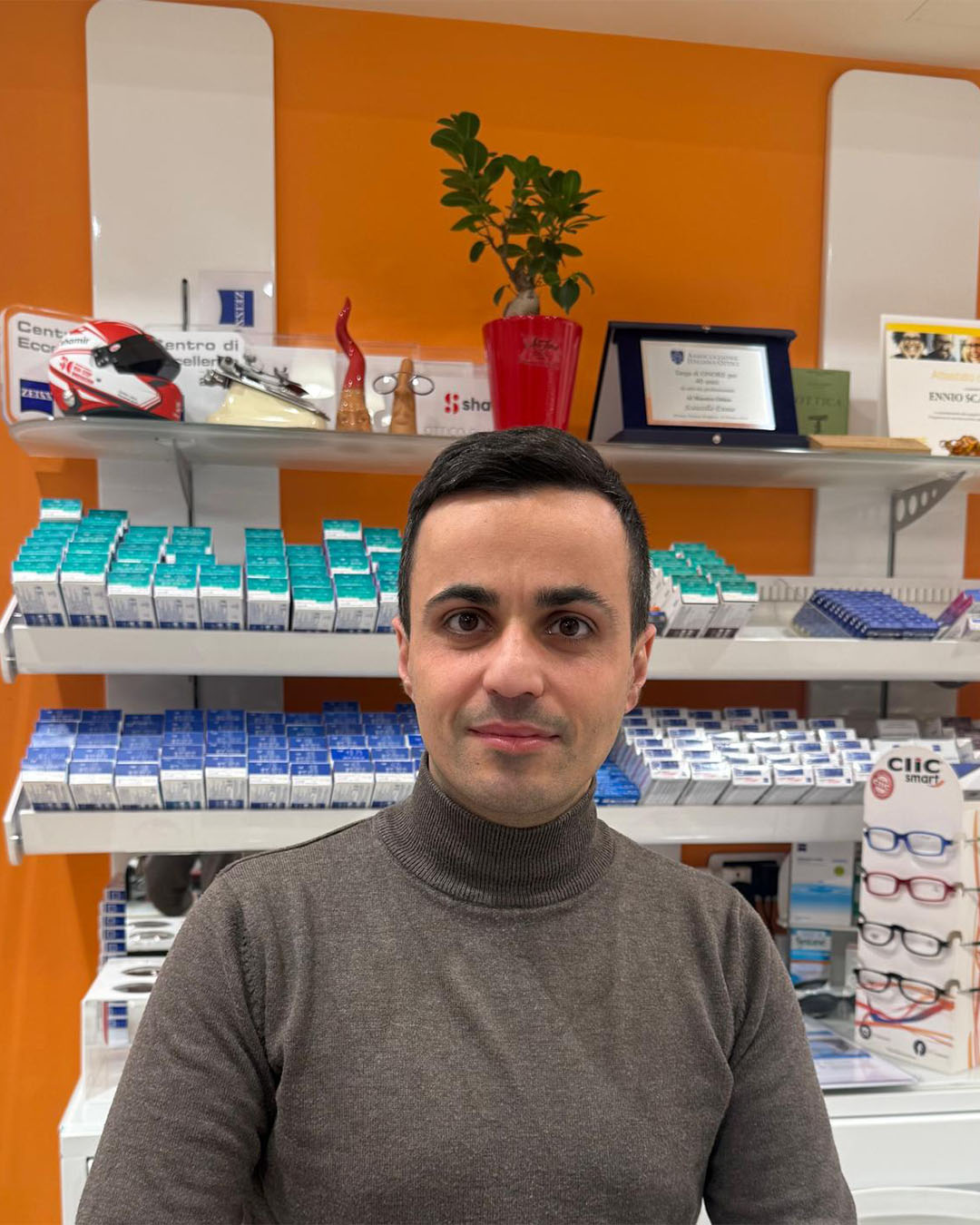 Con il suo stile dinamico e il suo entusiasmo, Andrea rappresenta la continuità e l’evoluzione di un nome che, da oltre settant’anni, è sinonimo di qualità e passione per l’ottica.